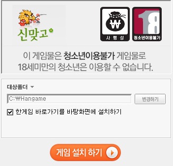 원하는 경기장으로 입장하게 되면 자동으로 신맞고 한게임 다운받기가 시작되며 게임설치와 옵션지정을 할수 있게 됩니다.